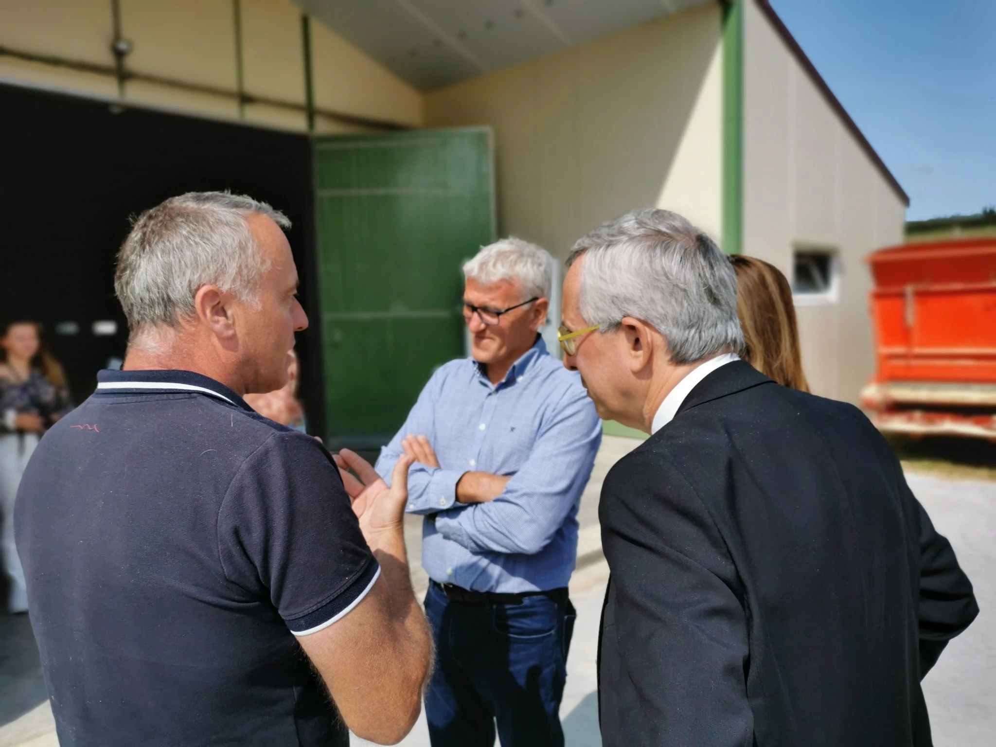 Les représentants de l’État se sont aussi déplacés sur une exploitation d’élevage de Verosvres, près de Charolles. Ils ont discuté avec Patrice Labrosse, président de la coopérative de production avicole de Saône-et-Loire (CPASL), Christophe Morel, directeur de l’abattoir Palmid’Or et les associés du Gaec Carrette.
