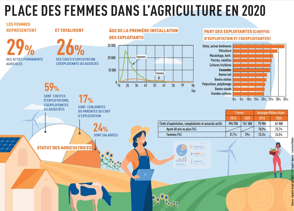 Inlassablement, depuis 46 ans, le 8 mars est l’occasion de revenir sur les combats de ceux et celles qui ont fait progresser les droits des femmes, de célébrer les avancées obtenues pour la réduction des inégalités de genre et de mettre un coup de projecteur sur le chemin qu’il reste à parcourir avant d’atteindre une réelle égalité entre les hommes et les femmes. En agriculture, les femmes qui représentent aujourd’hui 29 % des actifs permanents et 26 % des chefs d’exploitation, coexploitants ou associés, ont dû elles aussi - et doivent encore - batailler pour une meilleure reconnaissance de leur activité au sein des exploitations, obtenir des droits nouveaux ou tout simplement parvenir à l’égalité avec leurs homologues masculins. Grâce aux divers témoignages d’agricultrices engagées dans le combat féministe et à travers l’analyse de la sociologue Sabrina Dahache, nous vous proposons de poser un regard sur la situation des femmes en agriculture, de revenir sur ce qu’elles ont obtenu et sur ce qui leur reste encore à décrocher pour atteindre l’égalité. Ce sera aussi l’occasion de rencontrer Catherine Faivre-Pierret, la toute nouvelle présidente de la Commission nationale des agricultrices de la FNSEA. Cette agricultrice en production laitière (Comté) dans le Doubs, remplace Jacqueline Cottier qui a décidé de passer la main après neuf années de mandat. Parmi les dossiers que Catherine Faivre-Pierret entend porter, figure notamment celui des gardes d’enfants. Vous pourrez lire ce dossier dans votre hebdomadaire départemental agricole ou en ligne sur son site internet. Grande cause des deux quinquennats du président de la République, cette date anniversaire a été également l’occasion d’une annonce faite par la Première ministre Élisabeth Borne du déploiement sur les années 2023-2027 d’un plan interministériel pour l’égalité entre les femmes et les hommes. Ce plan s’articule autour de quatre grands axes que sont la lutte contre les violences faites aux femmes ; la santé des femmes ; l’égalité professionnelle et économique ; et la culture de l’égalité.