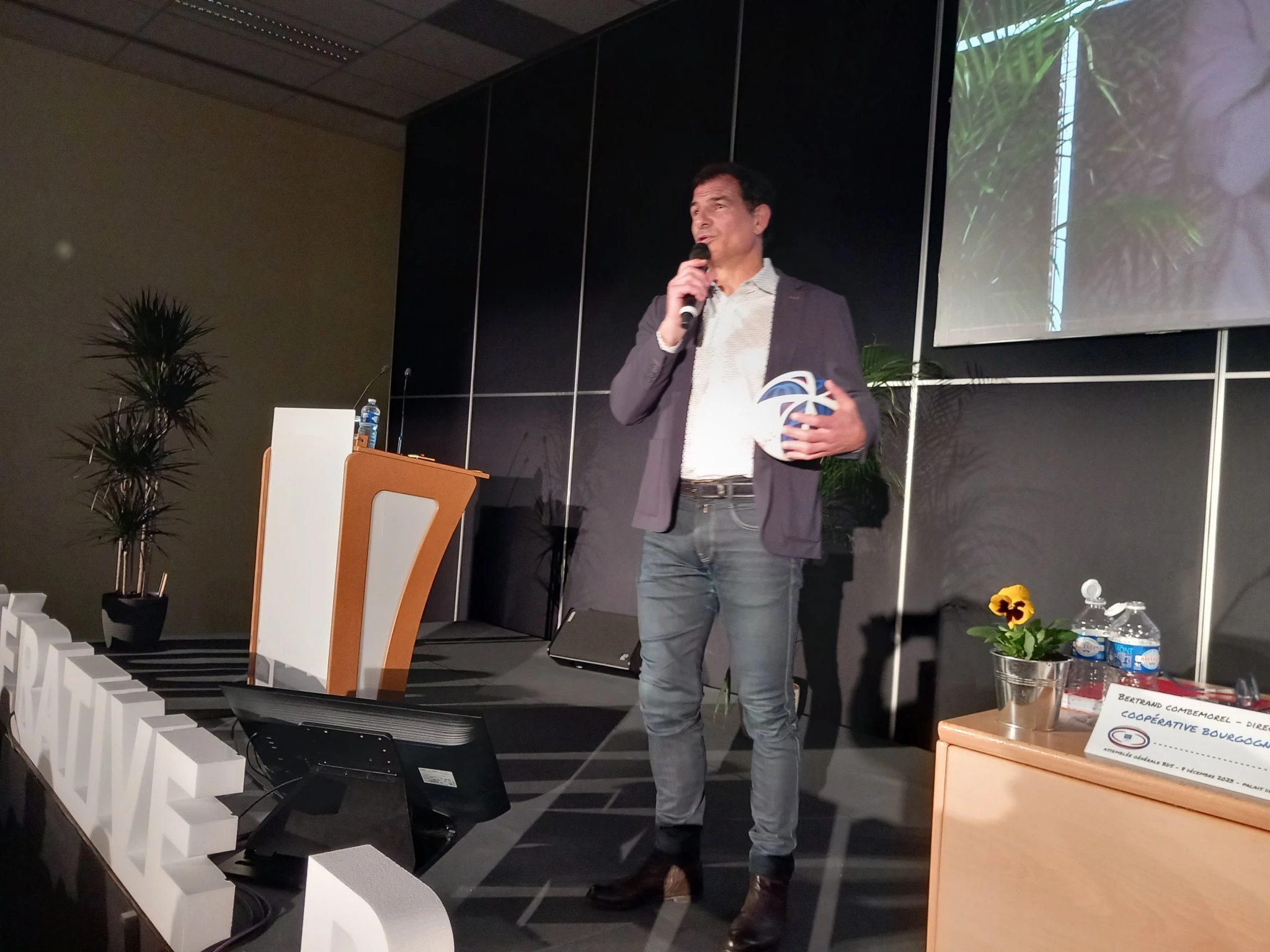 Une assemblée générale placée sous le signe du ballon ovale : c'est ainsi que la coopérative Bourgogne du Sud a tracé le bilan de son année, le 8 décembre au palais des congrès de Beaune. Tous les aspects de la vie de l'entreprise ont été traités au prisme du vocabulaire rugbystique, avec des adhérents comparés par Lionel Borey, le président de Bourgogne du Sud, à un pack de rugby, comprenant « des gros, des grands, des qui courent, des qui sautent, des qui ralent, mais beaucoup de complémentarité. Il y a aussi les arrières, les trois quarts, toutes les équipes au service de la coopérative, qui recherchent la performance ». Et puis, poursuivait-il, il faut faire avec les arbitres, avec lesquels on n'est pas toujours d'accord... mais qui ont toujours raison. Ce qui n'empêchait pas Lionel Borey de se réjouir des capacités de défense mises en place sur le terrain : la récente opération d'inversion de panneaux de communes pour exprimer l'irritation du monde agricole face à des règles et contraintes pas toujours cohérentes, l'abandon des hausses de taxation sur les pollutions diffuses ou l'irrigation, le plan de soutien à l'agriculture bio ou la volonté d'aller plus loin sur les agroénergies. Et puis, au rugby, il y a aussi le « 16è homme » : le public, qui pousse son équipe. « Pour nous, poursuivait Lionel Borey, ce sont les consommateurs. Envers eux, nous communiquons, nous expliquons pourquoi nous jouons comme ça. Nous avons notre marque « Nous Autrement », créée avec Alliance BFC, qui regroupe aussi Dijon Céréales et Terre Comtoise. Au final, nous devons nous adapter en permanence au jeu de l'équipe adverse ».
