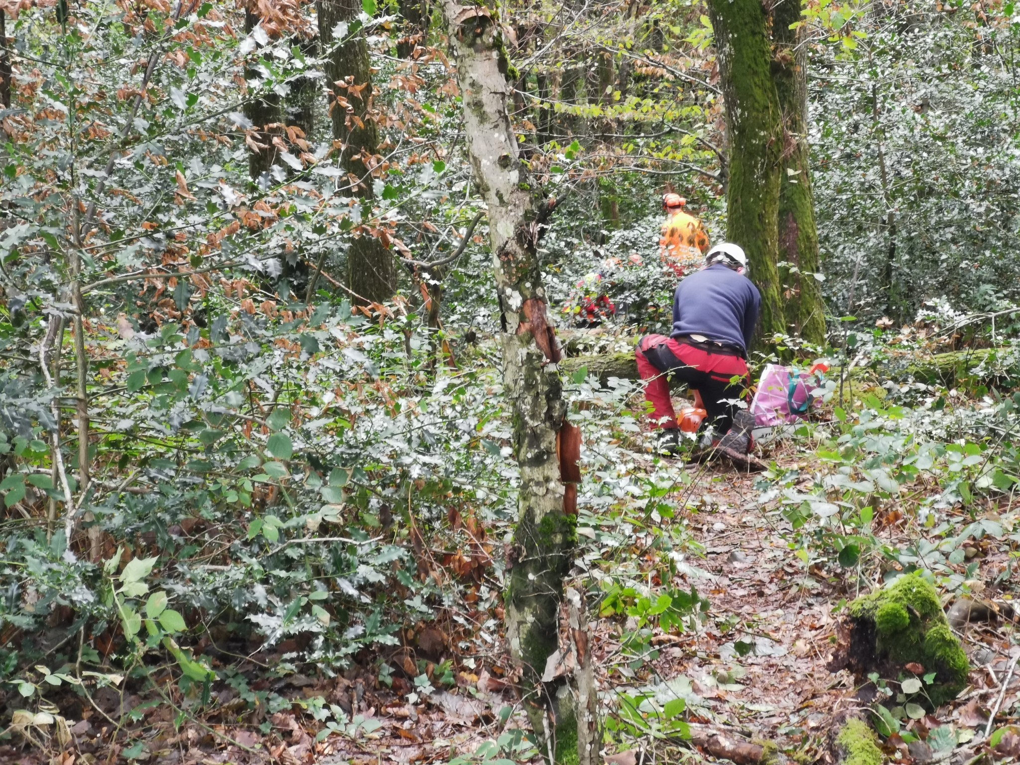 Les formateurs sensibilisent en particulier les stagiaires à leur sécurité. « Nous travaillons avec les équipements de protection individuelle, casque, chaussures de sécurité, pantalons anti-coupures », poursuit François Bonnevialle. « Nous demandons aux participants de bien communiquer entre eux pour favoriser une pratique collective. Nous sommes treize dans la forêt : si chacun n’en fait qu’à sa tête, ça peut vite devenir dangereux. »