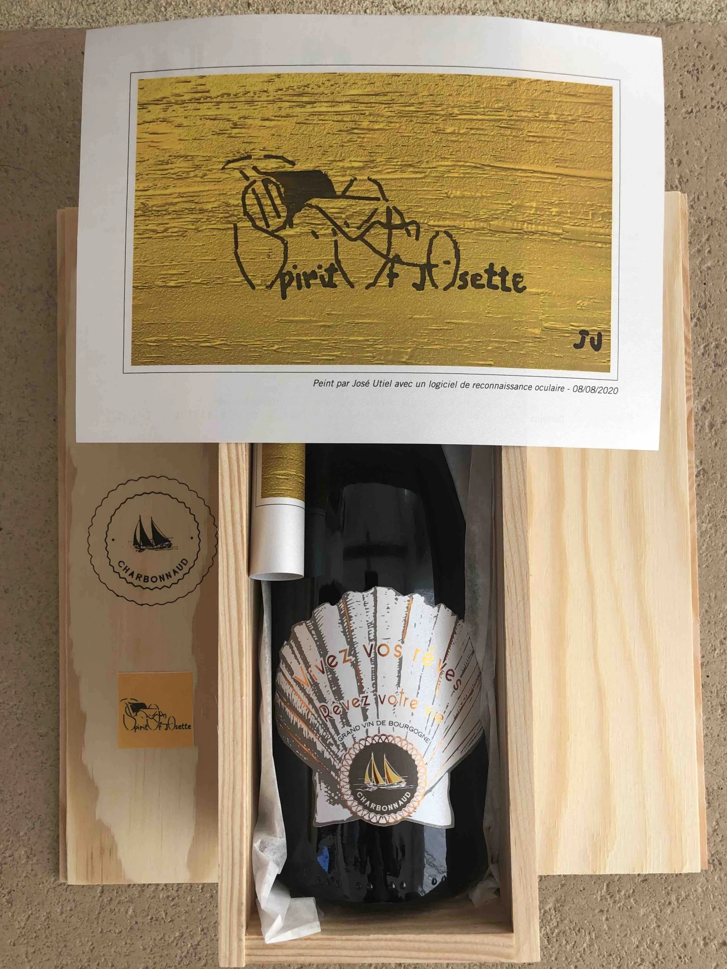 Membre de l’association Courir Moroges, Benoît Charbonnaud a vu l’un de ses amis, José Utiel, touché par la maladie de Charcot. « J’ai découvert les joies de ce sport au moment où il en a été privé et cela m’a énormément ému. J’ai alors souhaité donner de mon temps et de mon engagement pour cette cause ». C’est ainsi que Benoît Charbonnaud décide d’élaborer une cuvée de Bourgogne rouge, En cortechat 2019, issue de sa meilleure parcelle en Côte Chalonnaise. Avec l’ambition d’offrir 300 bouteilles en édition limitée afin de récolter des fonds et de participer à la création de prototypes. Les bouteilles sont vendues au caveau du domaine, à 20 € l’unité, sous forme de coffret. La somme est intégralement reversée à l’association Spirit of Josette. « Une reproduction de peinture réalisée par José, faite avec son logiciel de reconnaissance oculaire, est également offerte dans chaque coffret ».