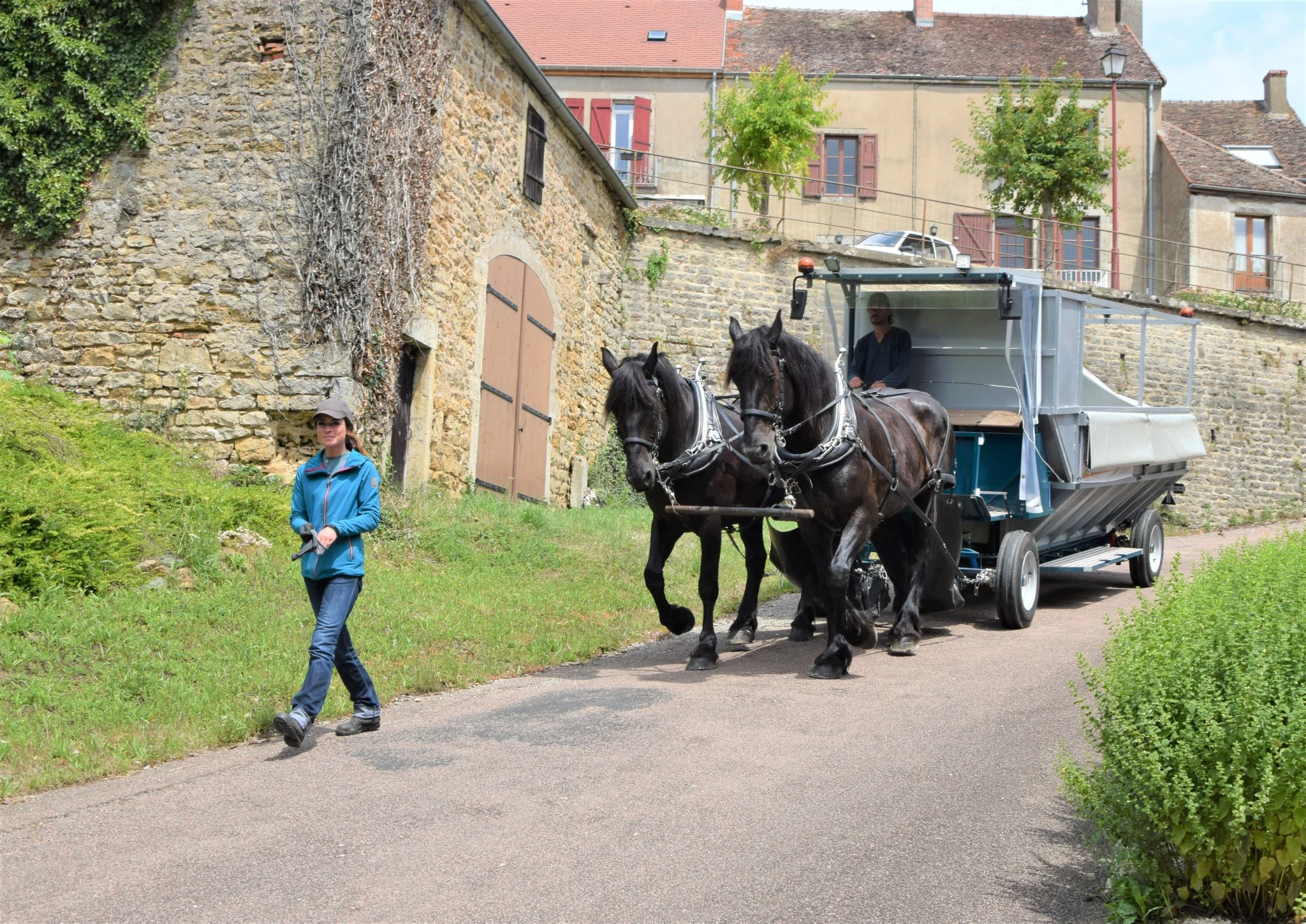 Un matin d’octobre dernier, les habitants de Chagny ont entendu débarquer un drôle d’équipage chargé de collecter les déchets destinés au recyclage. Il s’agissait de Magali Rouch-Paulin et Jacques Charton et de deux de leurs percherons, accompagnés des ripeurs habituellement chargés de cette tournée.