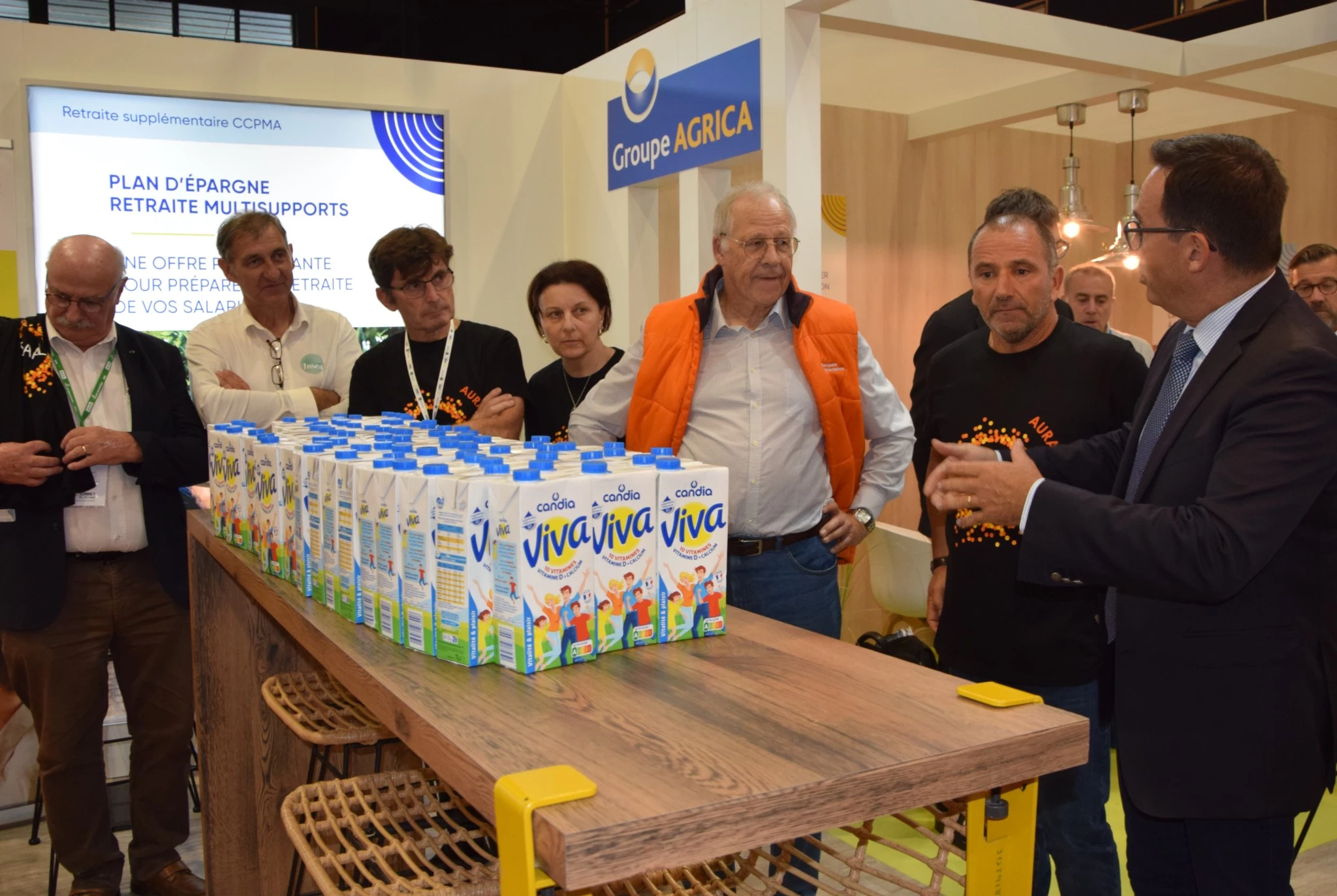 Tout un symbole : plusieurs briques de lait ont été acheminées en une grande et joyeuse chaîne depuis le stand de la FRSEA Auvergne Rhône-Alpes jusqu’à celui d’Agrica. Ces quelques litres de lait représentaient en fait les 6 750 litres effectivement donnés à la Banque alimentaire via l’association Solaal Aura. « À l’origine, l’idée était vraiment de donner le lait trait pendant le Sommet de l’élevage », explique Lola Schweitzer. Si techniquement ce n’est pas exactement ce qui se passe, ce don effectif de la coopérative Sodiaal « met en valeur la solidarité de la filière laitière », poursuit la coordinatrice de Solaal Aura. Et c’est ainsi l’équivalent de neuf palettes de lait que l’association a reçues et va pouvoir distribuer via ses huit sites auvergnats, dont une épicerie solidaire étudiante située à Clermont-Ferrand. « Nous distribuons chaque année 267 000 litres de lait, relate Pascal Coquelet, ce don-là représente donc 2,5 % de nos besoins. Chaque don compte et celui-ci est particulièrement important », insiste le secrétaire général de la Banque alimentaire Auvergne. Et ce d’autant plus dans le contexte actuel de hausse des demandes et de baisses des dons, surtout de la part des GMS (jusqu’à présent pourvoyeuses de la moitié des quantités récoltées).