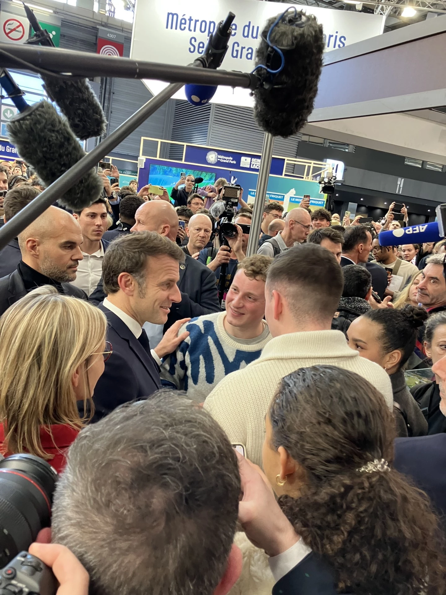 Emmanuel Macron, qui est resté une grosse dizaine d’heures sur le Salon, a rencontré très tôt les organisations professionnelles agricoles parmi lesquelles les syndicats agricoles (FNSEA, Jeunes agriculteurs, Coordination rurale, Confédération paysanne). Arnaud Rousseau, président de la FNSEA, a indiqué que l’échange avait duré quinze minutes au cours desquels ont été abordés les dossiers internationaux. « Nous lui avons redit combien nous étions inquiets à propos de l’Ukraine, des accords de libre-échange, des États-Unis et de la Chine » En effet, « l’incertitude de ces relations expose les agriculteurs français à des sanctions économiques et des importations qui les impactent directement sur leur exploitation ». L’échange a également porté sur les crises sectorielles (grandes cultures, élevage, viticulture notamment). « Sur ces dossiers, les résultats n’arrivent pas assez vite », estime Arnaud Rousseau qui a demandé au gouvernement de « mettre en œuvre les moyens de redonner du revenu et des perspectives au monde agricole ». Devant les syndicats agricoles, le chef de l’État a défendu l’idée « d’un plan d’avenir » plutôt que celle d’un « plan de défense ». Après cette rencontre, Emmanuel Macron a coupé le ruban inaugural en compagnie de M. Aziz Akhannouch, Premier ministre du Maroc (invité d’honneur du Salon), de la ministre de l’Agriculture, Annie Genevard, et du président du Salon, Jérôme Despey. Puis il est allé saluer la vache Oupette, limousine égérie de l’événement, avant d’entamer sa déambulation dans le calme auprès des professionnels exposants, alors que le Salon n’avait pas encore ouvert ses portes au public.