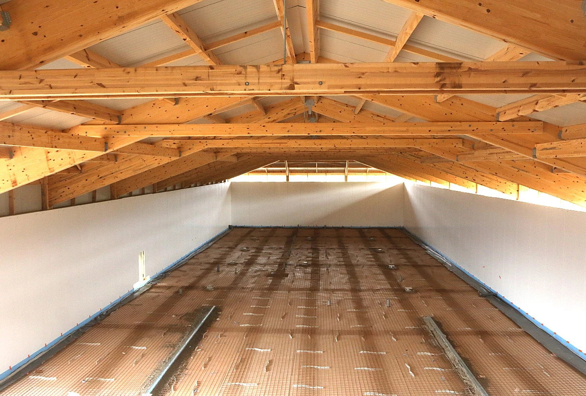 Pour la fromagerie du Fédou, la charpente a même été un cran plus loin que juste du bois : cette charpente en bois lamellé-collé (un processus de fabrication qui offre une résistance et une stabilité structurelle remarquable, et est notamment utilisé dans la construction de maisons, de bâtiments commerciaux et industriels, apportant une esthétique naturelle et chaleureuse) a été réalisée en pin de Lozère, un bois produit localement et labellisé bois de France*. Un projet qui a posé de nombreux défis aux différents entrepreneurs intervenant sur le chantier, et notamment sur l’utilisation du pin dans une charpente, ce qui est plutôt rare. Le pin est rarement valorisé à ce niveau, car il n’est pas considéré comme « noble ». Il est plus souvent utilisé en bois d’œuvre pour de la palette ou de l’emballage. « Ce type de chantier permet de prouver que, même dans le pin, on a du bois qui peut prétendre à être utilisé en construction, même si cela demande des aménagements, eu égard à la composition du bois, qui a notamment des couronnes de nœud plus importantes ». En plus de la charpente, est prévu un bardage bois sur la partie maçonnée. C’est l’entreprise Batut charpente qui s’est chargée du chantier, en lien avec la scierie mendoise Neofor, et le chantier a été suivi par l’architecte Adrien Pratlong.